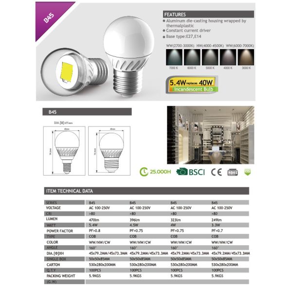 BULB B45 LED COB Images |
